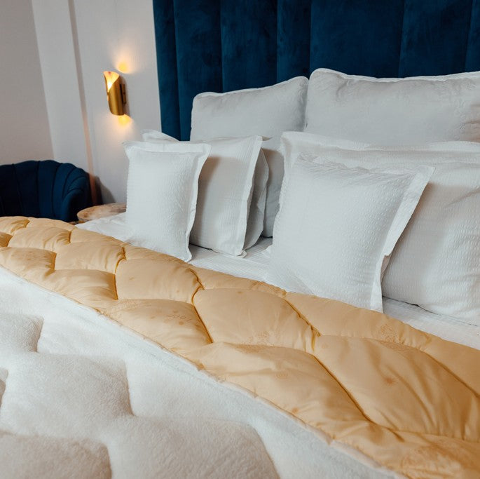 - O densitate optimă care conferă o izolație termică ridicată, păstrând căldura corporală în timpul nopților reci de iarnă. Aceasta oferă suficientă greutate pentru confort, fără a deveni prea grea.